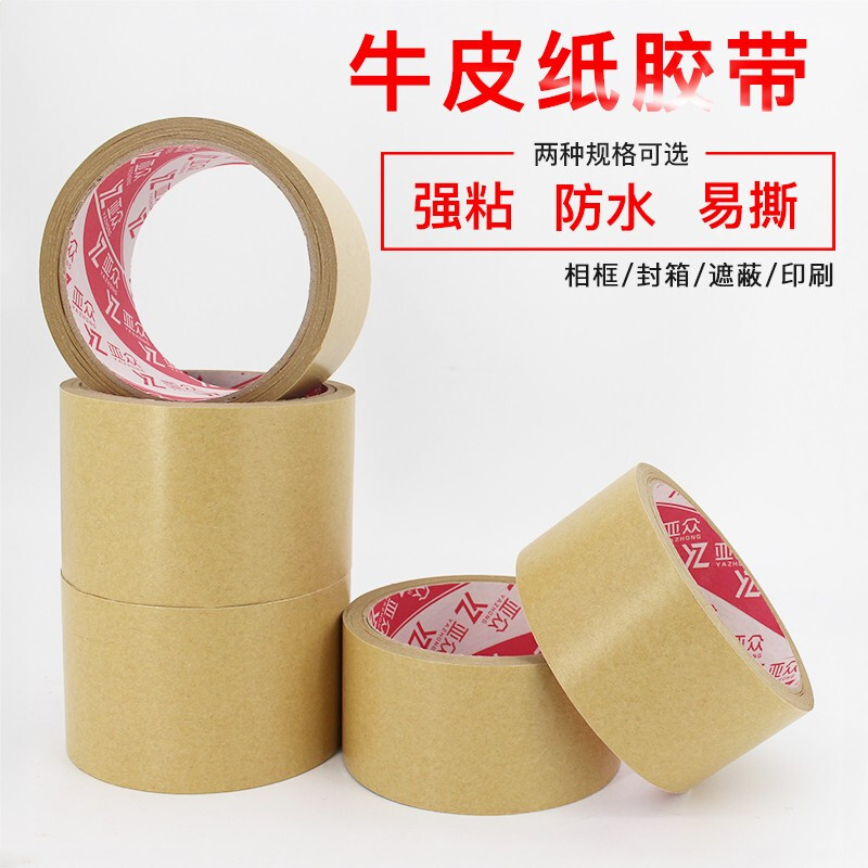 • 亚众 牛皮纸封箱胶带高粘强力胶带 可手撕胶带相框胶纸质胶纸 棕色免水自粘胶带环保胶带 6cm*13米长 5卷/筒