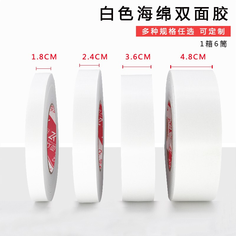 • 亚众 整箱胶带海绵双面胶带 加厚白色泡沫胶带 强力海绵双面胶高粘度固定墙面泡沫胶带 2.4厘米宽*4.57米长 54卷/箱