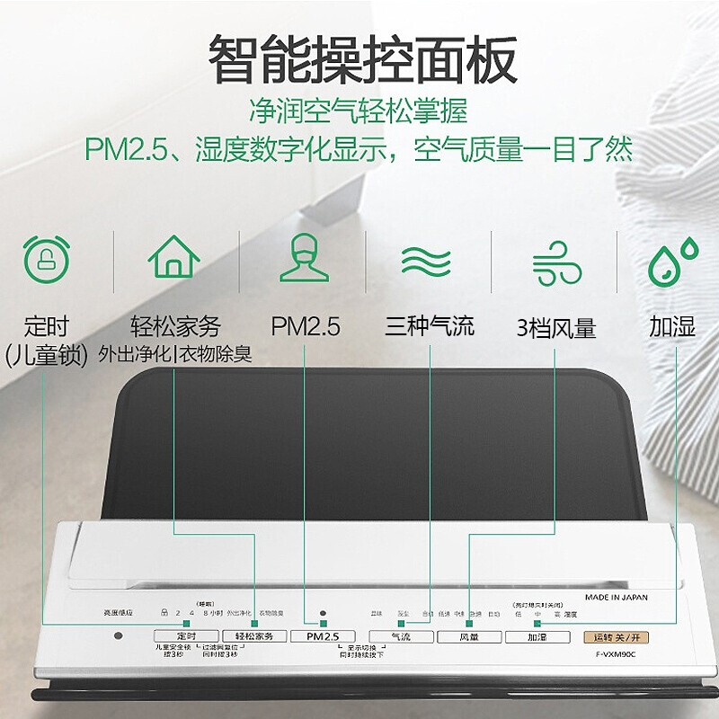 松下(Panasonic)空气净化器家用除菌除甲醛无雾加湿宝宝护盾F-VXM90C-W3