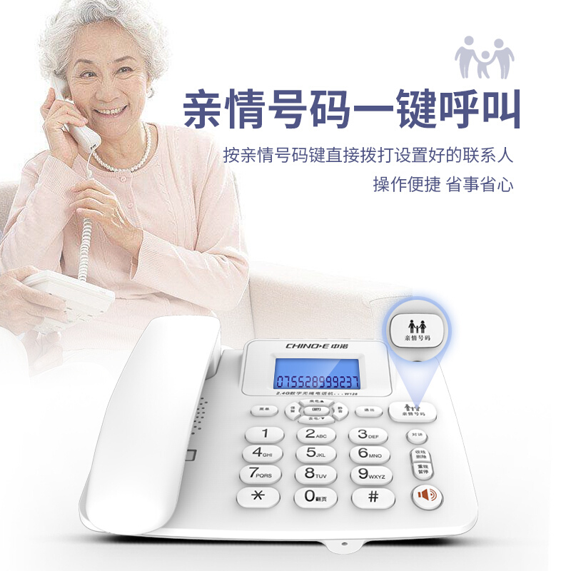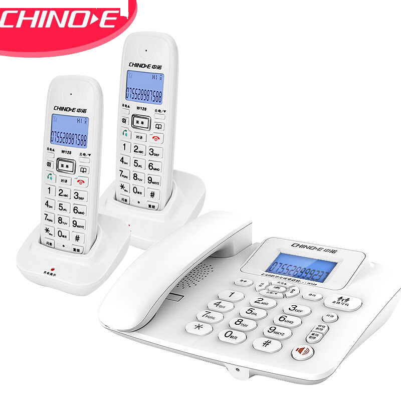 中诺 W128 数字 无绳 电话机 无线 座机 子母机 内线通话 一键拨号 免提通话 固定 电话 一拖二 白色