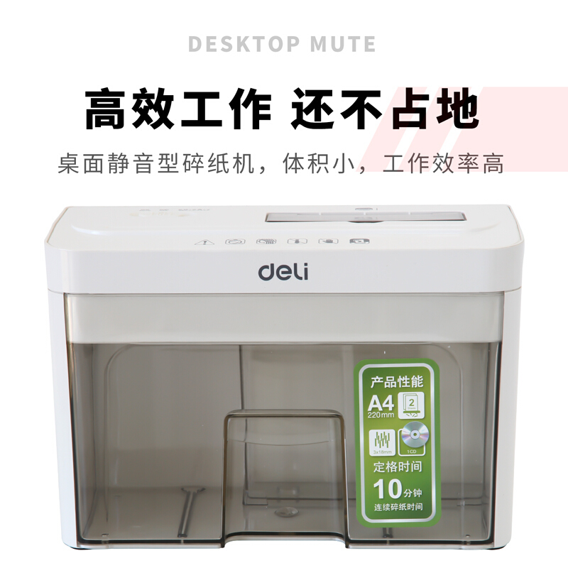 得力(deli)个人办公静音桌面碎纸机 4级保密多功能碎纸机文件粉碎机92614