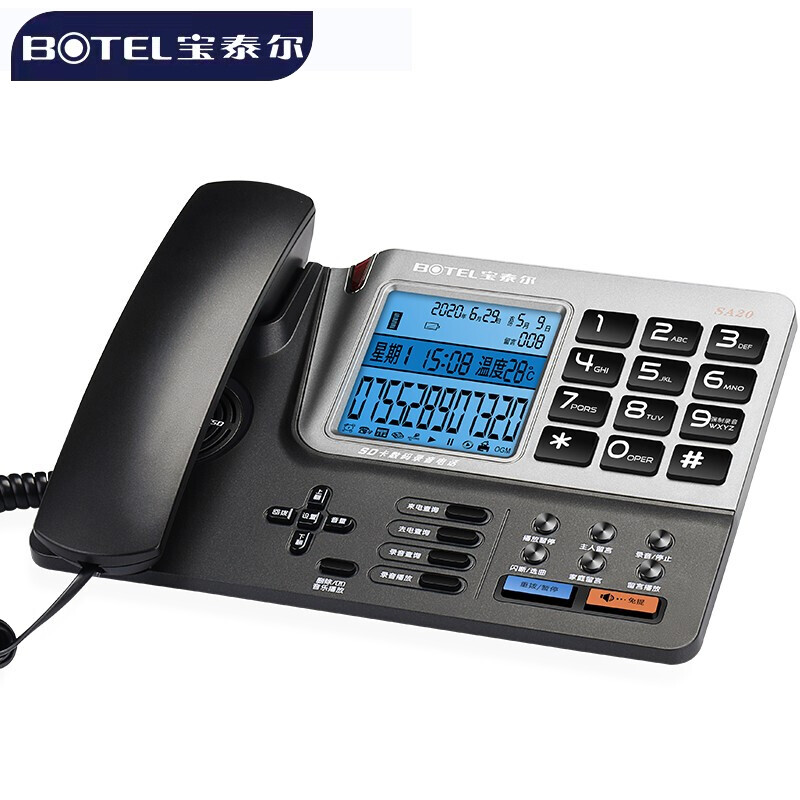 宝泰尔(BOTEL)电话机座机 办公家用数码自动录音电话机 MP3自选铃声/智能显屏 SA20 爵士黑