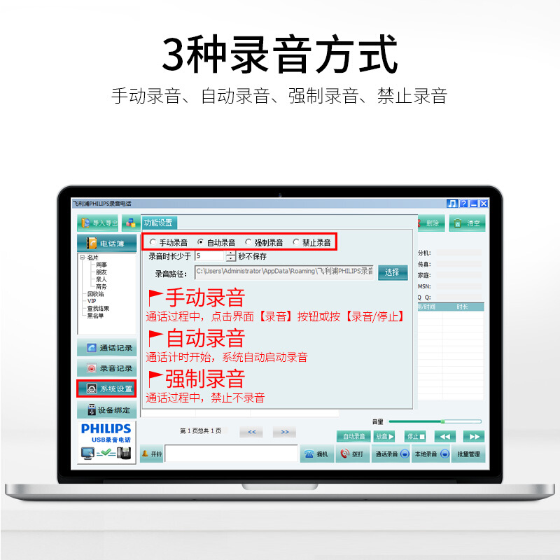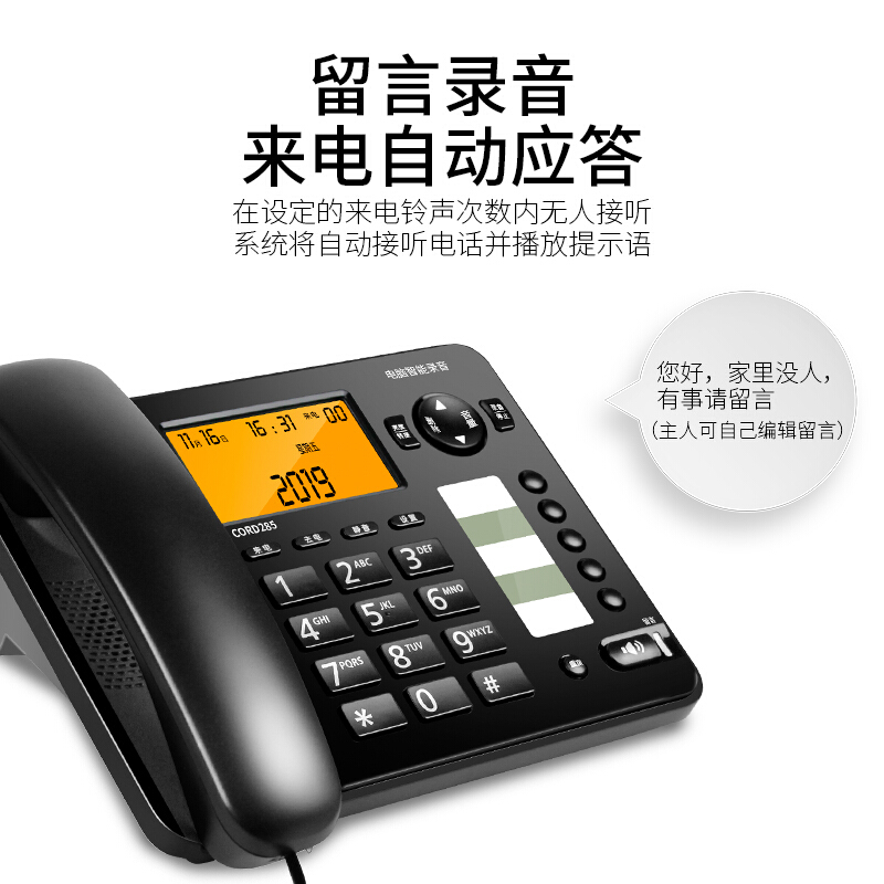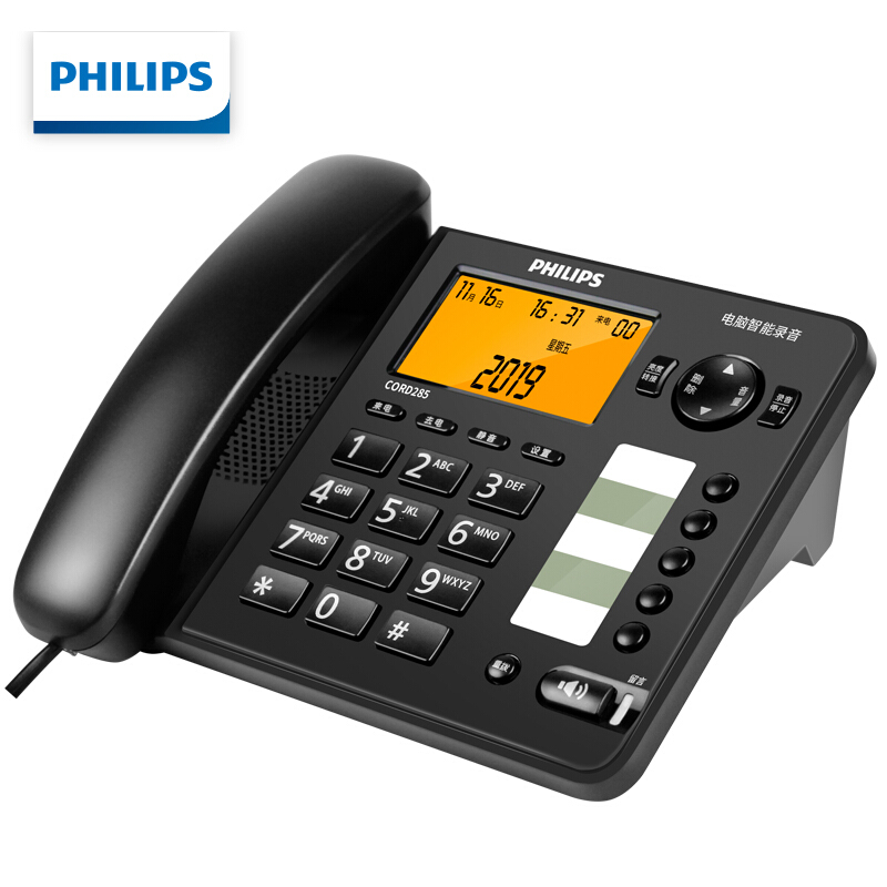 飞利浦(PHILIPS)录音电话机 固定座机 办公家用 中文菜单 自动录音 CORD495黑色 黑色(电脑录音)