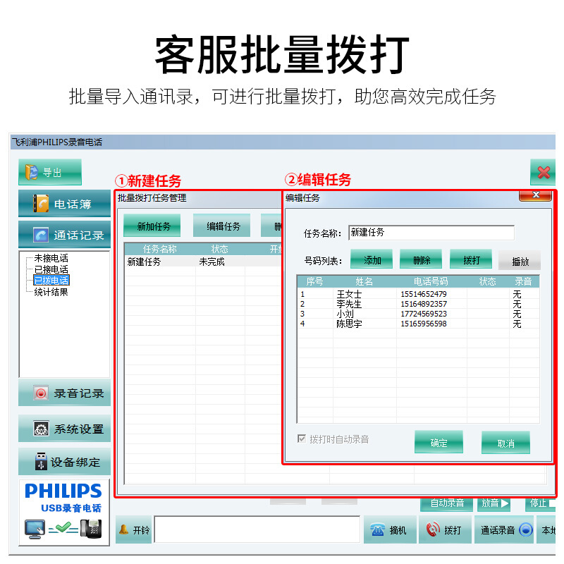 飞利浦CORD495 录音电话机 固定座机 自动录音 黑色(电脑录音)