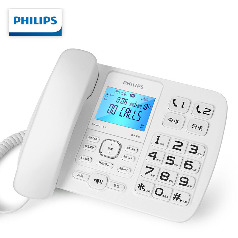 飞利浦(PHILIPS)录音电话机 固定座机 办公家用 自动 手动录音 放音密码保护 CORD165 (白色)