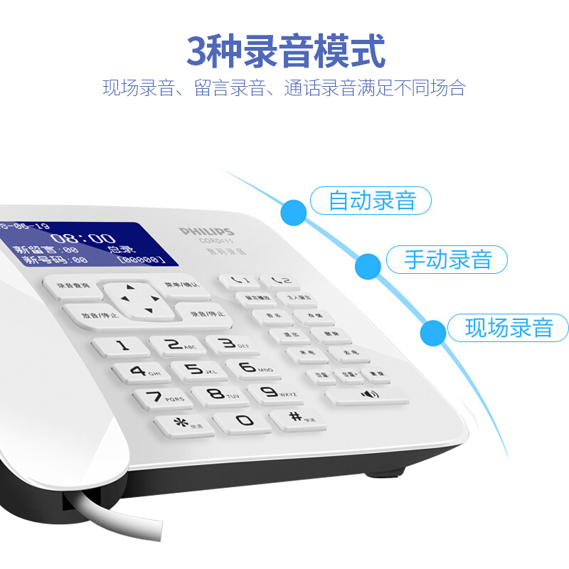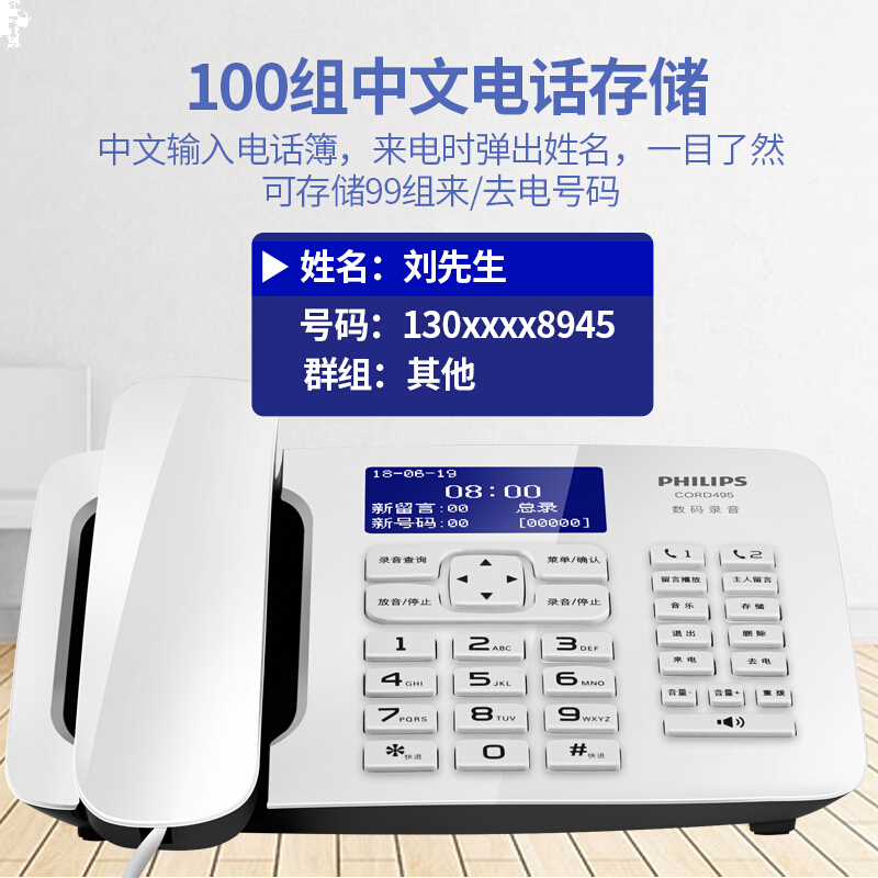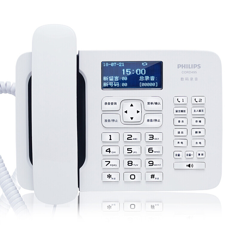 飞利浦(PHILIPS)CORD495 录音电话机 固定座机 办公家用 中文菜单 自动录音