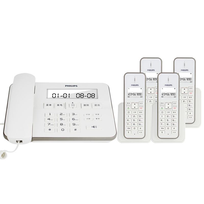 飞利浦(PHILIP)DCTG192电话机无绳子母机无绳电话无线电话机 白色 一拖四