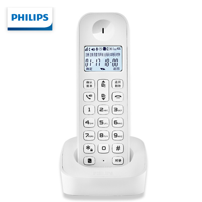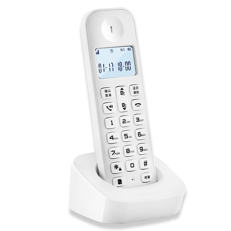 飞利浦 PHILIPS 数字无绳电话机/无线座机/单主机 白色屏幕背光 高清免提 家用办公 DCTG160(白色)