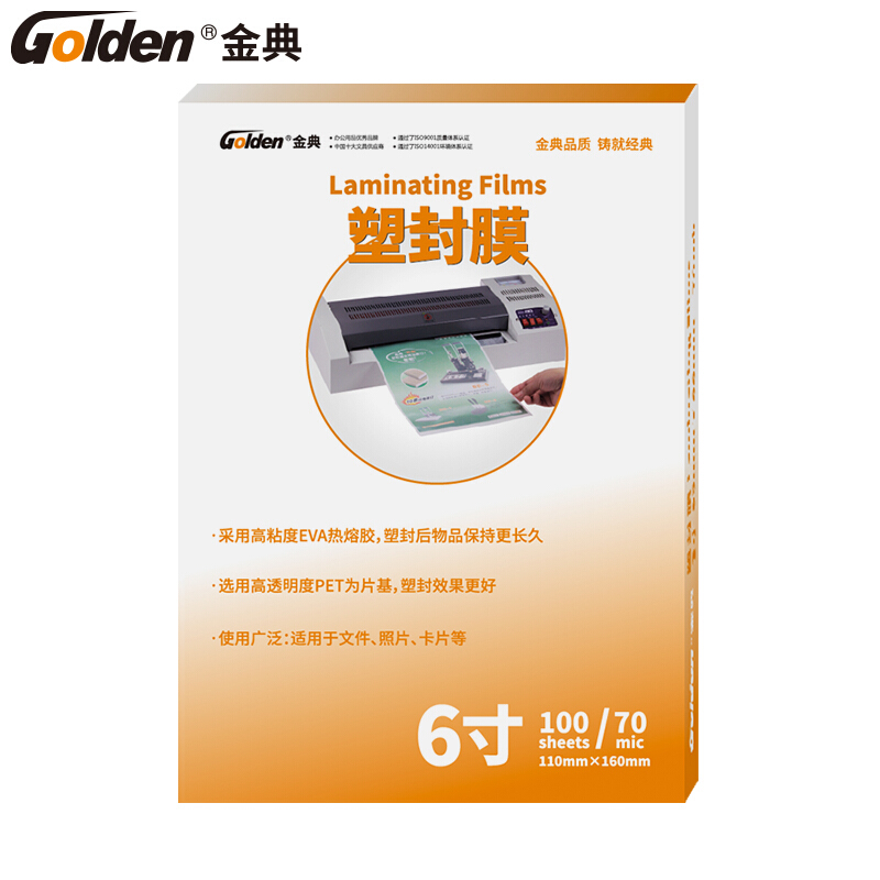 金典(GOLDEN)塑封膜6寸过塑膜 照片菜单文件护卡膜100张/包 7C 115*160