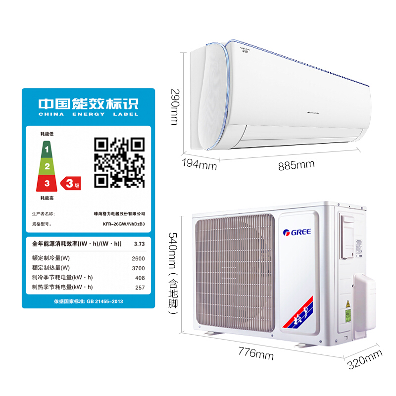• 格力 KFR-26GW/NhDzB3大1匹 壁挂式卧室空调挂机
