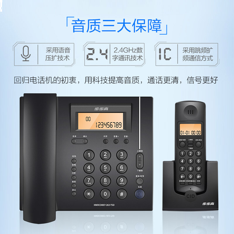 • 步步高W263 无绳电话机 无线座机 子母机 办公家用 内部对讲 3大音质保障 深蓝 一拖一