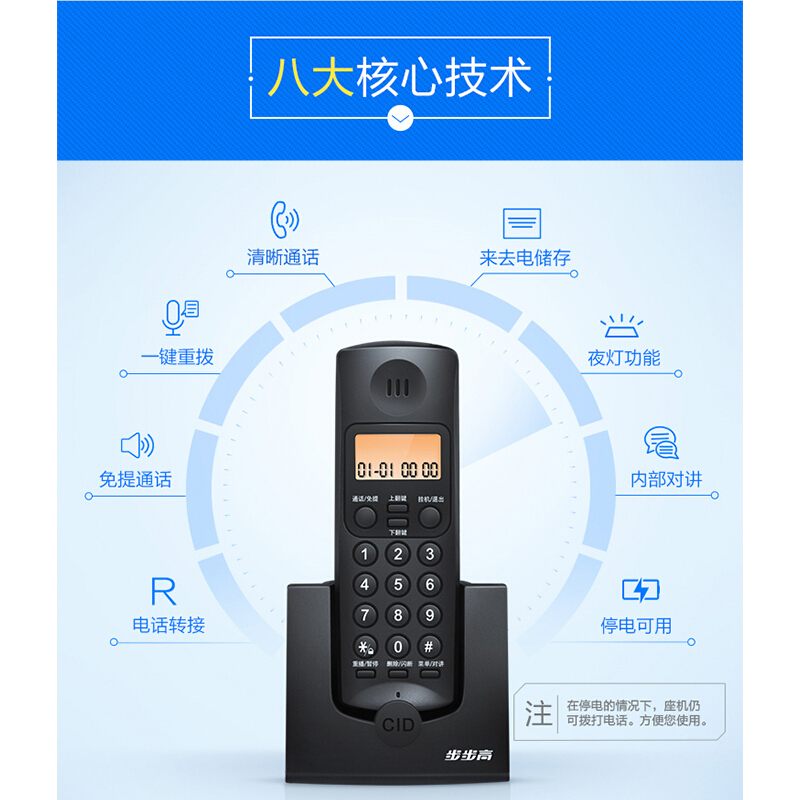 步步高(BBK)无绳电话机 无线座机 子母机 办公家用 内部对讲 3大音质保障 W263深蓝 一拖一