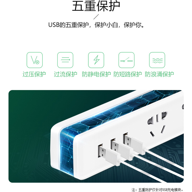 公牛(BULL) 插座/智能USB插座/插排/插线板/排插/接线板/拖线板 GN-B403U 小白USB插座总控全长1.8米
