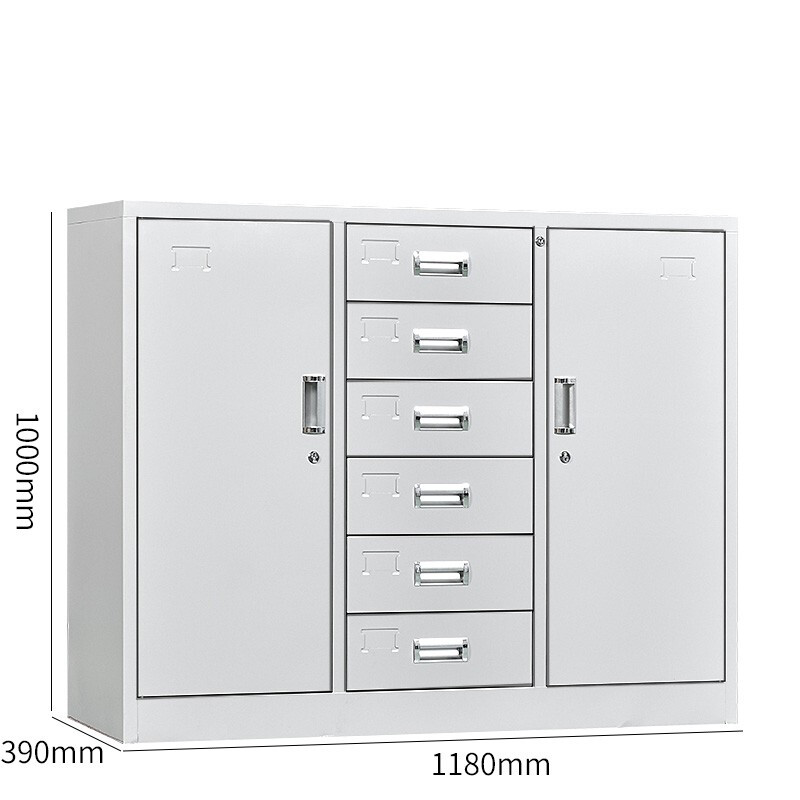 • 得阳 文件柜钢制铁皮柜档案柜矮柜办公柜资料柜阳台柜抽屉柜财务柜带锁带锁 宽中六下节 常规款