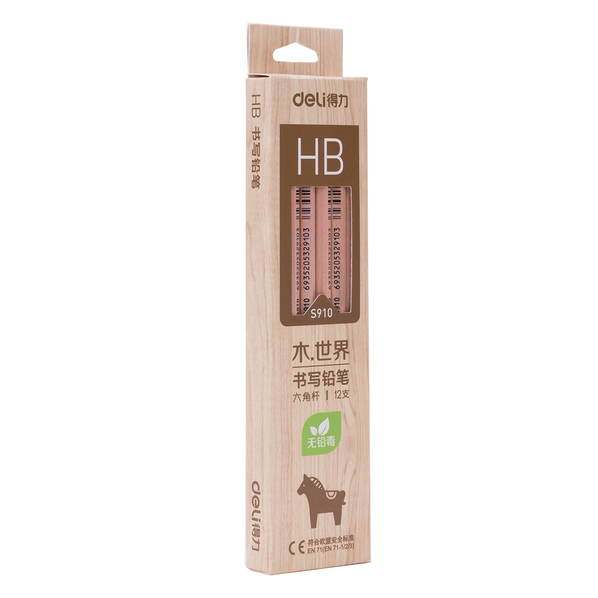 得力(deli) s909/s910原木铅笔盒装学生学习考试素描绘图铅笔 六角形铅笔12支/盒 HB 10支 58160