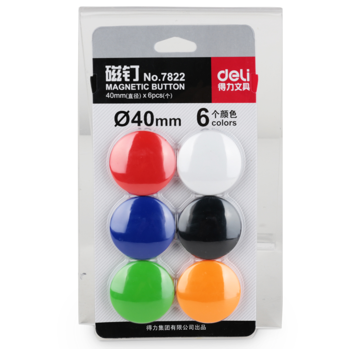 得力(deli)7822 彩色白板磁钉/磁珠/吸铁石 直径40mm 6个装