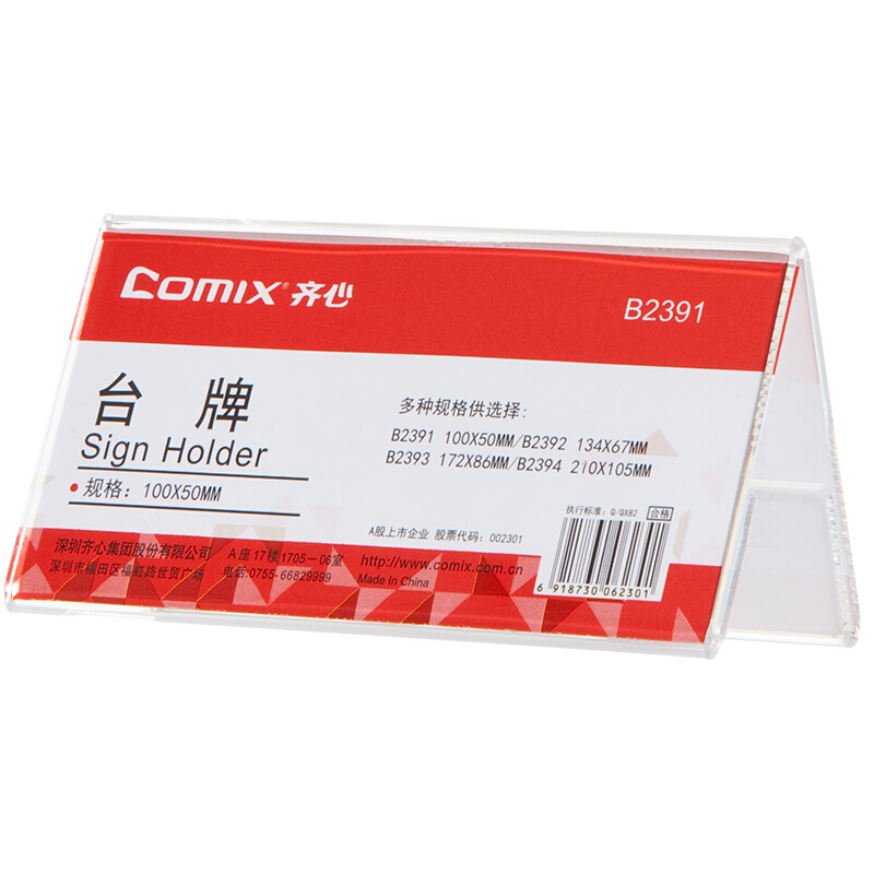 • 齐心(COMIX)100x50mm 高透明亚克力V型双面台牌/台卡/座位牌 B2391