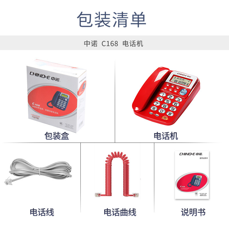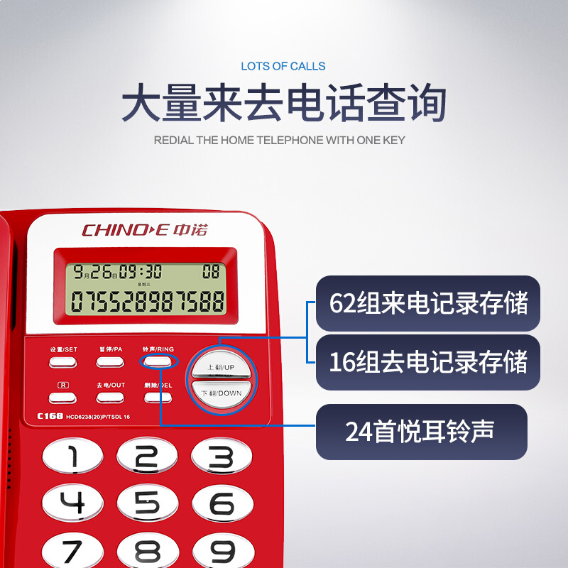 中诺 电话机座机 固定电话 办公家用 座机 电话 R键转接 免电池 双接口 C168红色