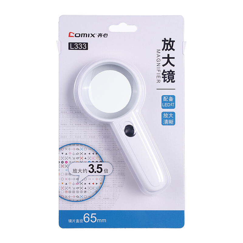 齐心(Comix) Ф65mm手持放大镜(配置双LED灯) 白 L333