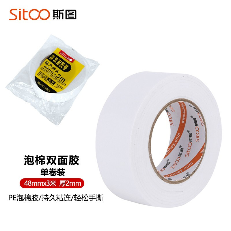 • 斯图sitoo 泡棉双面胶带 3063海绵胶带4.8cm*3m 单个装