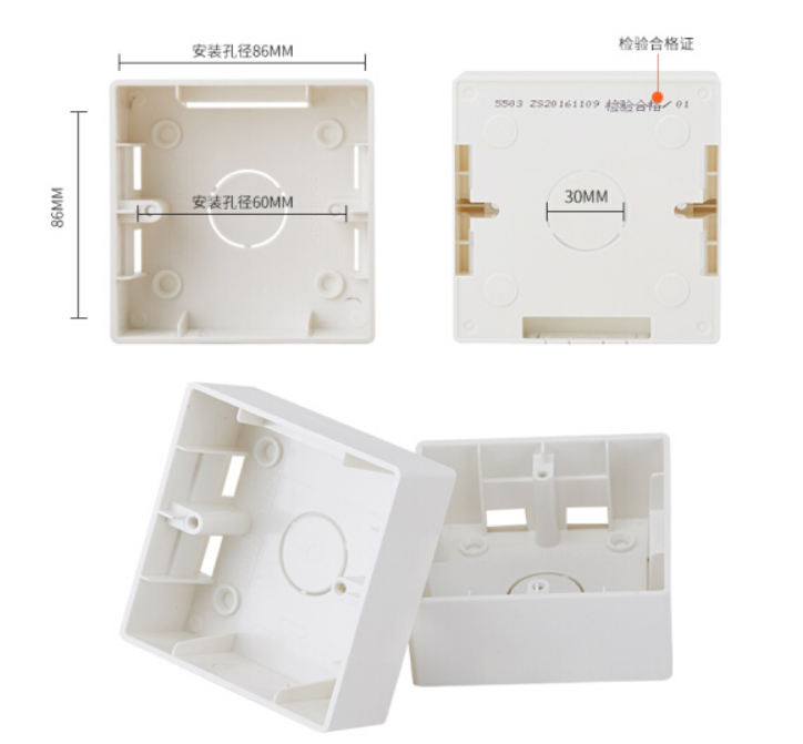 • 开关插座 86型明装盒 86mm*86mm*35mm