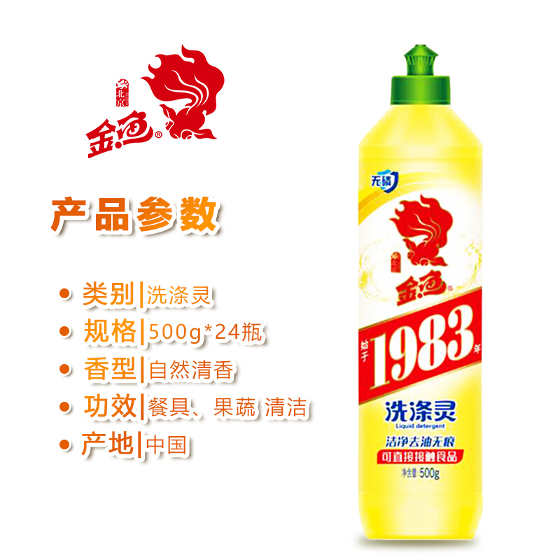 • 金鱼经典小洗涤灵500g *24 整箱装无磷护手 食品级配方洗洁精果蔬清洗剂