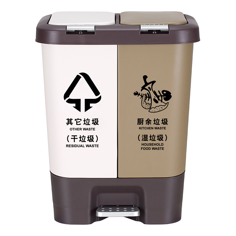 • 齐心L213 室内分类双格脚踏式垃圾桶 蓝+灰(可回收物+干垃圾)18L
