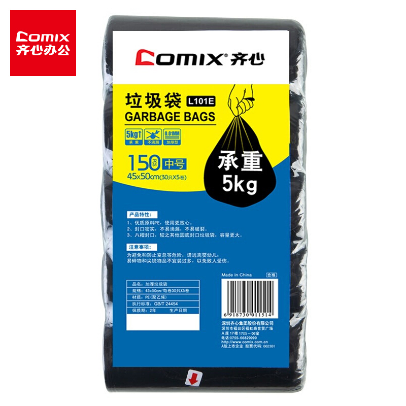 齐心(Comix)垃圾袋 加厚中号 办公用品 150只 45*50cm5卷 L101E