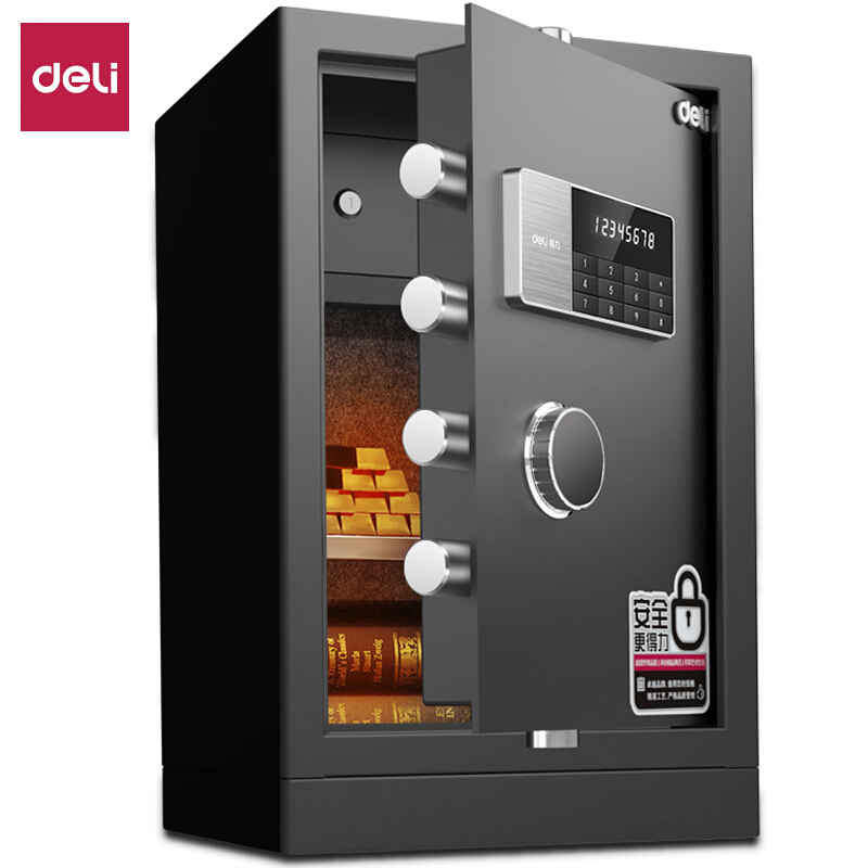 得力(deli)保险柜 全钢防盗电子密码保险保管箱 家用办公双保险保管柜 黑马92621