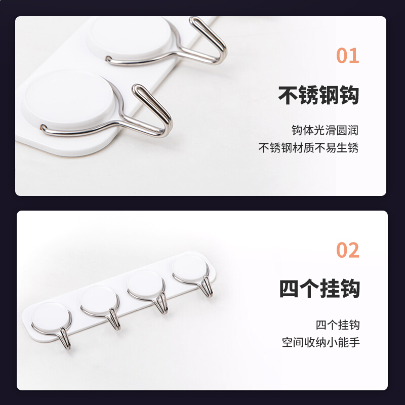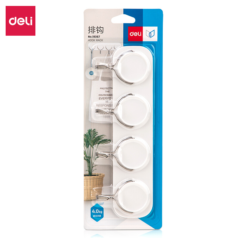 • 得力19367 办公家用不锈钢排钩 厨房浴室 钥匙小物件挂钩 4kg承重 白色