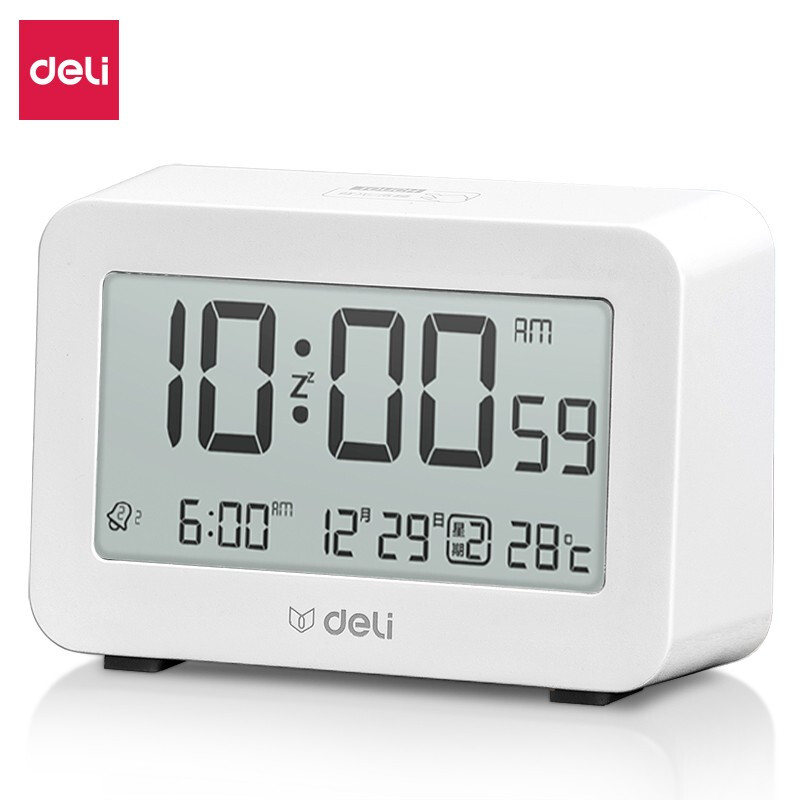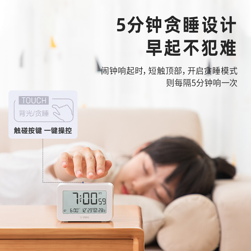 • 得力8839 多功能电子闹钟 学生背光电子钟 温度计功能 白色