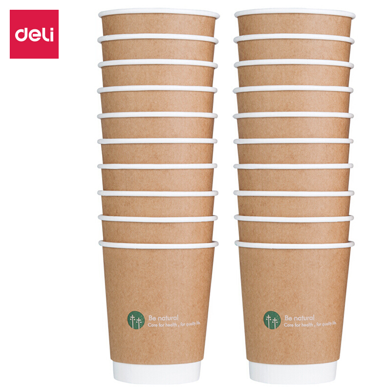 • 得力19204 280ml双层一次性纸杯 20只加厚办公水杯 棕色