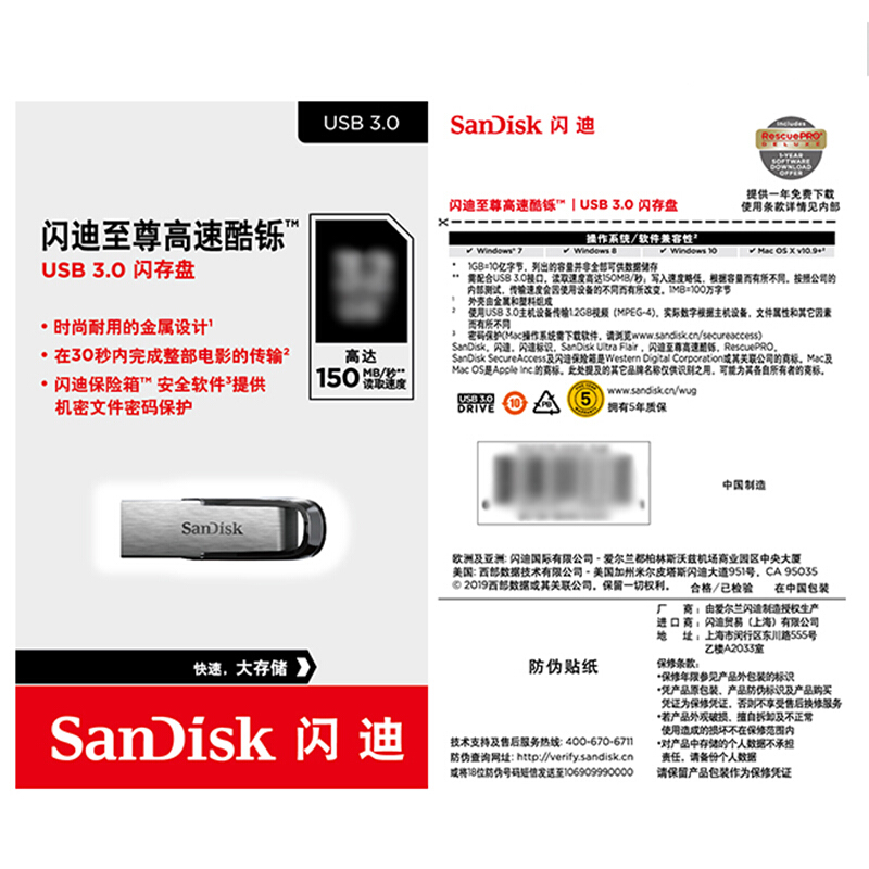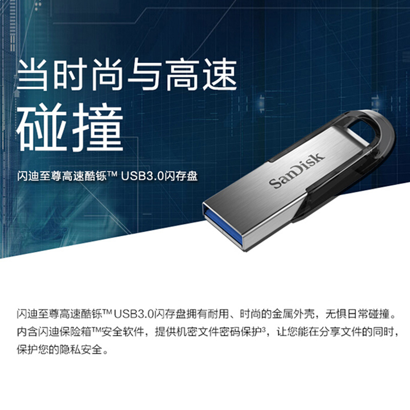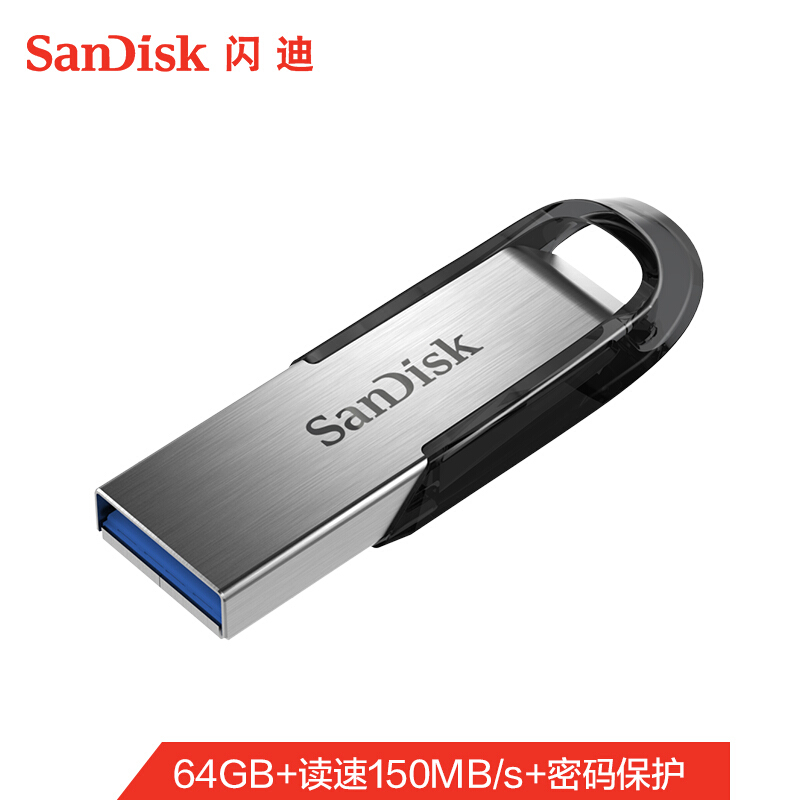• 闪迪64GB USB3.0 U盘 CZ73酷铄 银色 读速150MB/s 金属外壳 内含安全加密软件