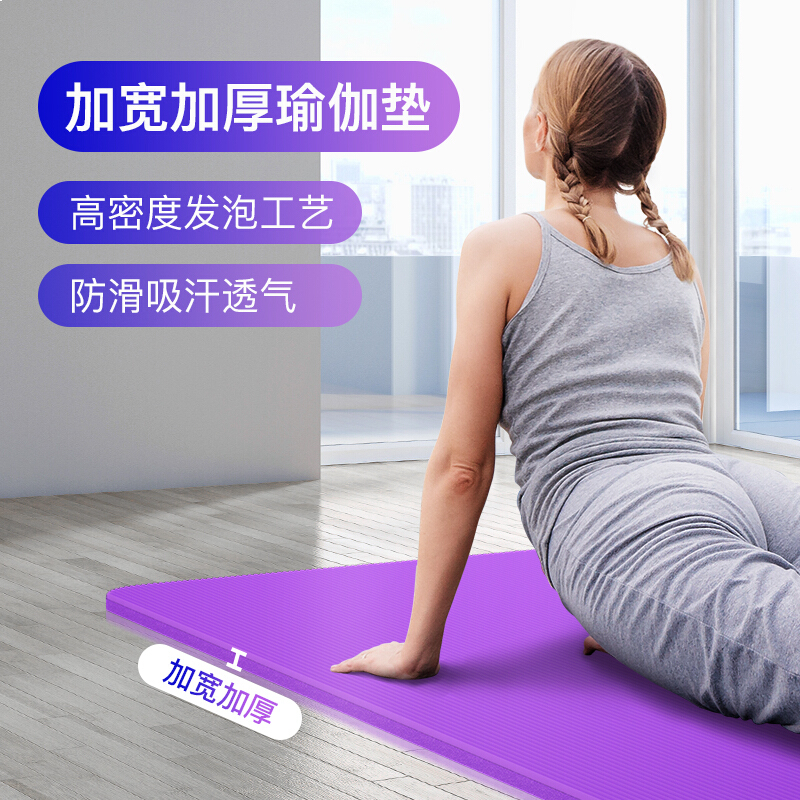 华亚 瑜伽垫 防滑加厚加宽健身运动垫家用运动器材 紫色