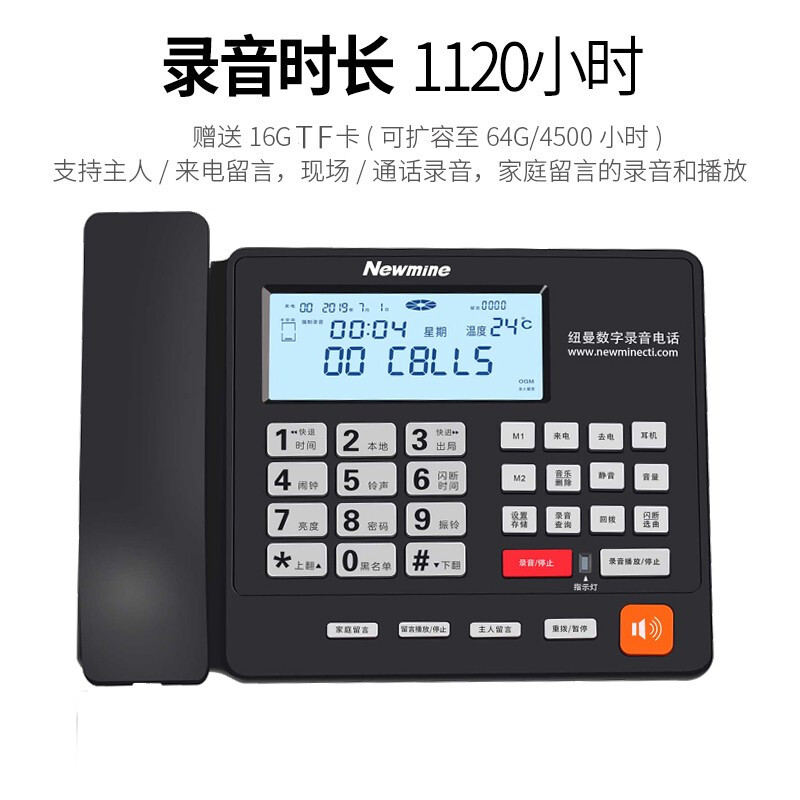 纽曼(Newmine)录音电话机自动录音2084答录座机送16G卡HL2008TSD-2083(R)