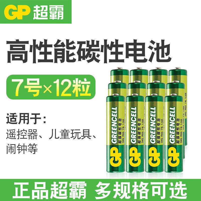 超霸(GP)AAAR03碳性电池7号12节 装闹钟/遥控器/手电筒/收音机24G-2ISP10