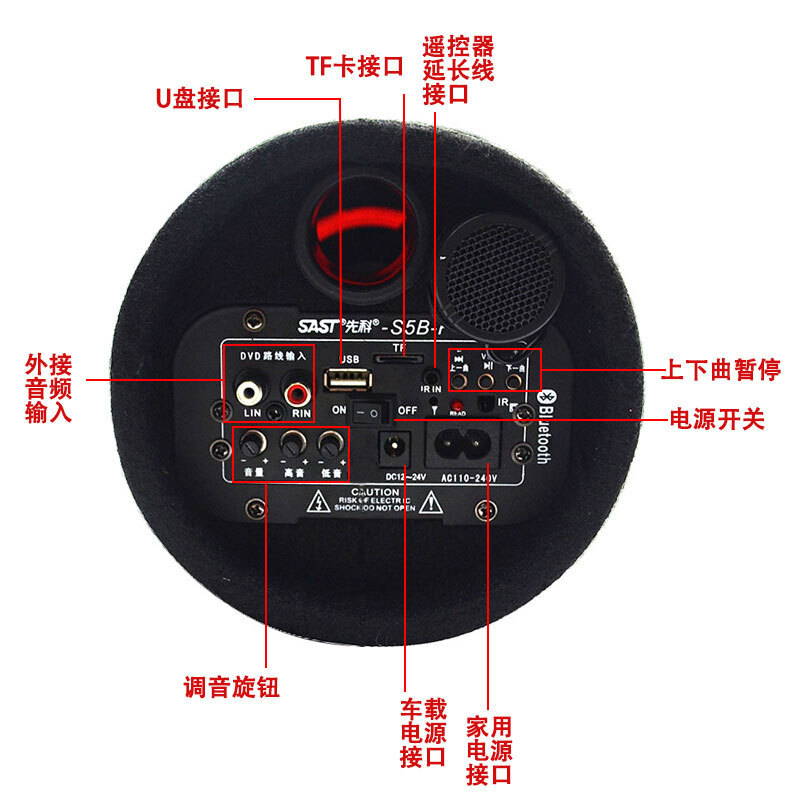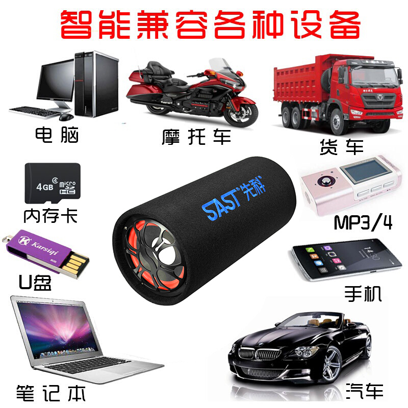 先科(SAST) 便携式USB车载蓝牙音响 12v/24v车载低音炮3用有源汽车喇叭带5英寸喇叭功放