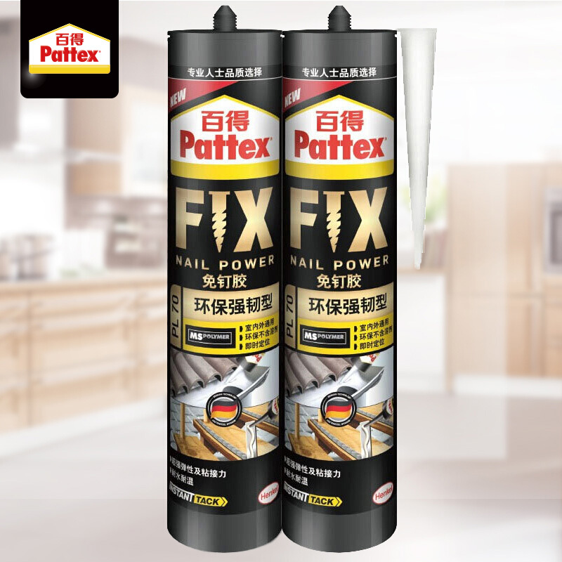 • 汉高百得PL70 免钉胶 环保强韧型玻璃胶 多用途强力液体钉 室内外通用耐水耐湿 白色 290ml 2支装