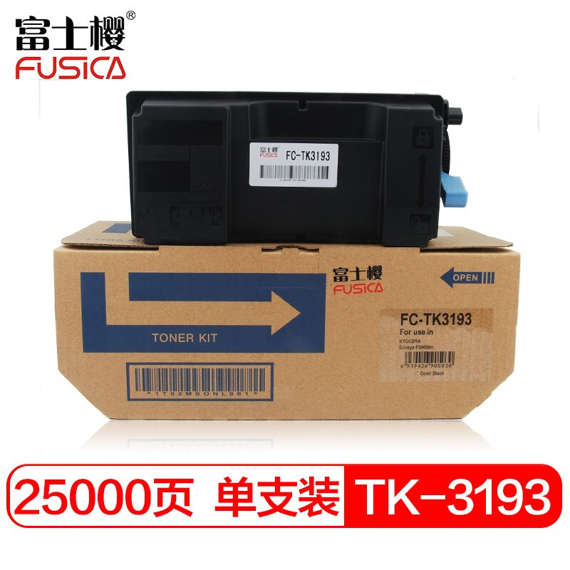 - 富士樱 TK-3193 大容量墨粉盒/碳粉粉仓(适用京瓷Kyocera ECOSYS P3055dn P3060dn)25000页
