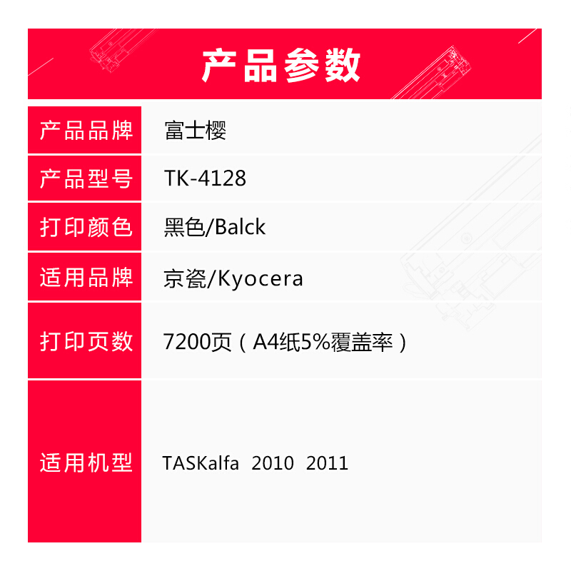 • 富士樱 TK-4128 墨粉盒(适用京瓷TASKalfa 2010 2011)黑色碳粉