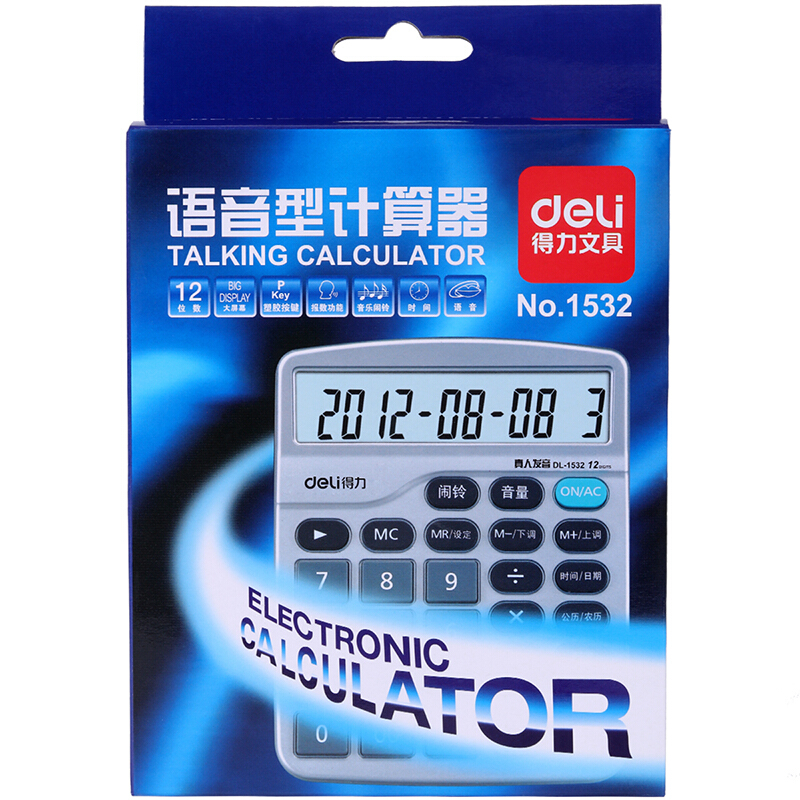 • 得力1532 银色语音计算器 12位大屏幕计算机 真人报数大频显示