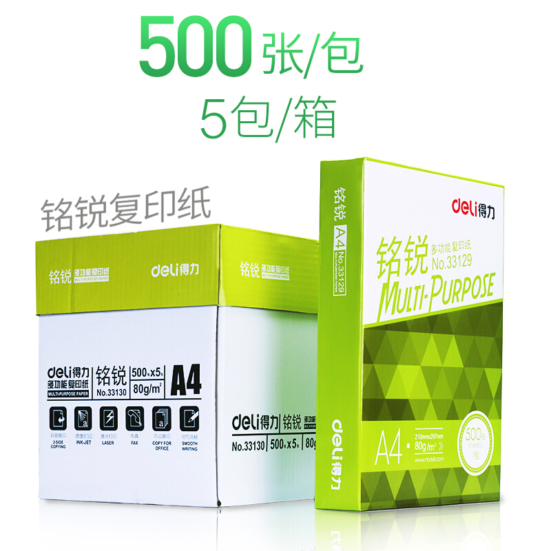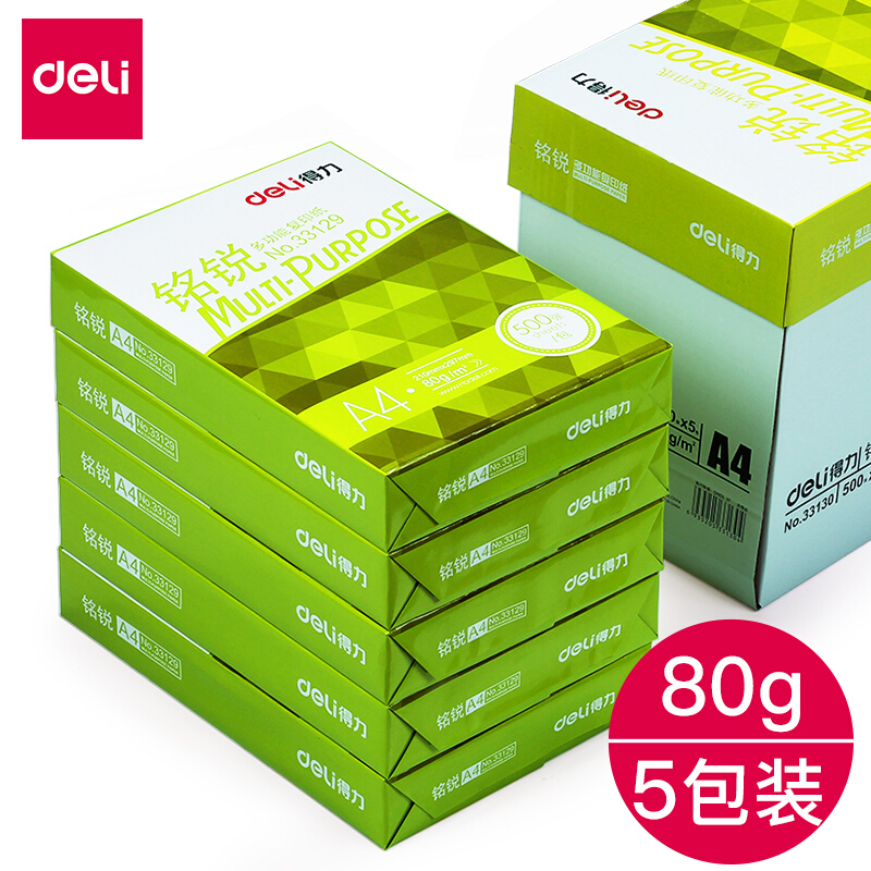 • 得力复印纸 A4/80g 铭锐木浆复印纸 整箱 5包装33128