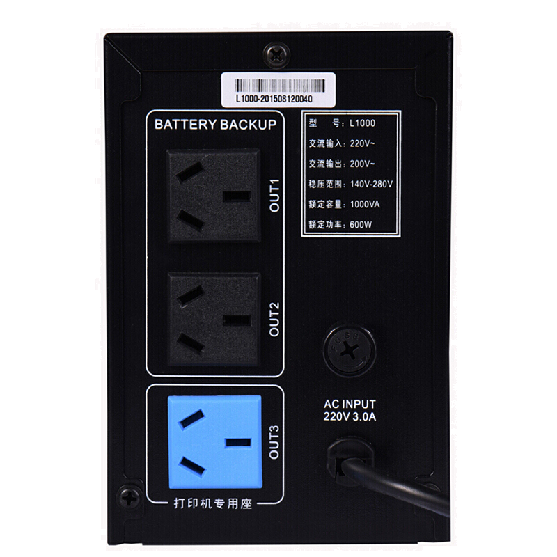 • 克雷士L1000 UPS不间断电源 防雷宽稳压600W后备式 电池单机超30分