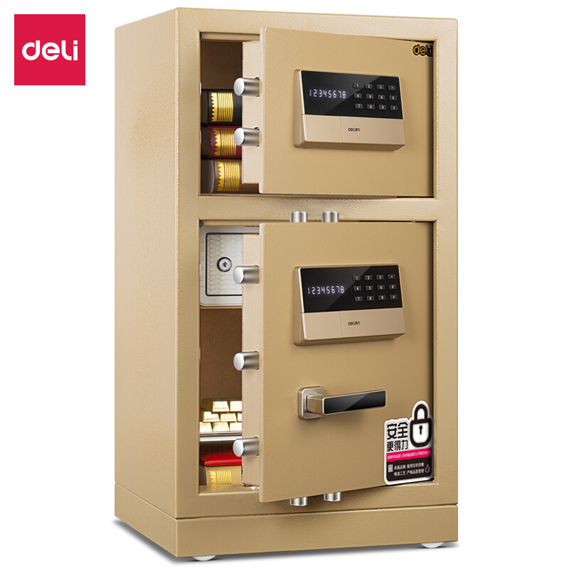 得力(deli)保险柜 高80cm双门双层家用办公保险箱 电子密码保管柜 镇山虎16653