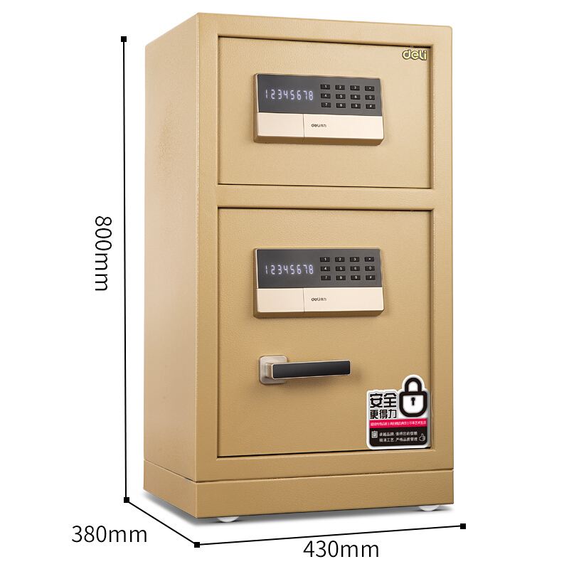 • 得力(deli)保险柜 高80cm双门双层家用办公保险箱 电子密码保管柜 镇山虎16653