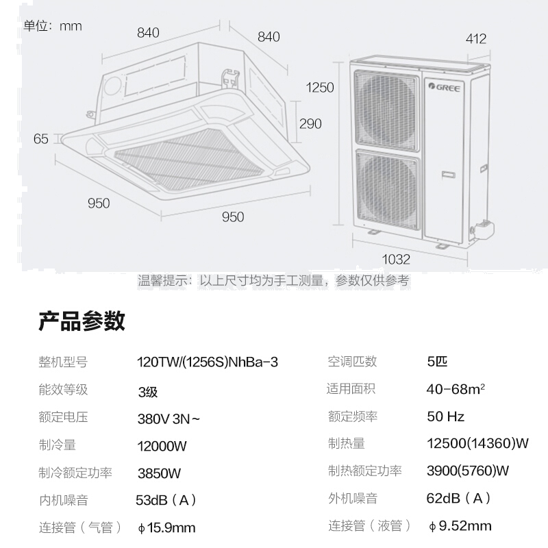 格力(GREE)3匹天花机 冷暖天井机 3p 家用中央空调 商用空调 KFR-72TW/(7256)NhBa-3