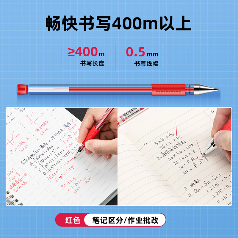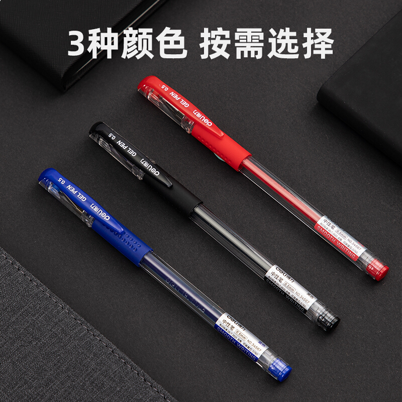 • 得力(deli)0.5mm办公中性笔 水笔签字笔 12支/盒红色34567 办公用品