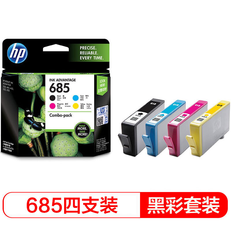 惠普 685 F6V35AA 黑彩套装(1黑3彩单盒装 适用hp 4615 AiO、4625 5525 3525 6525 eAiO Printer)