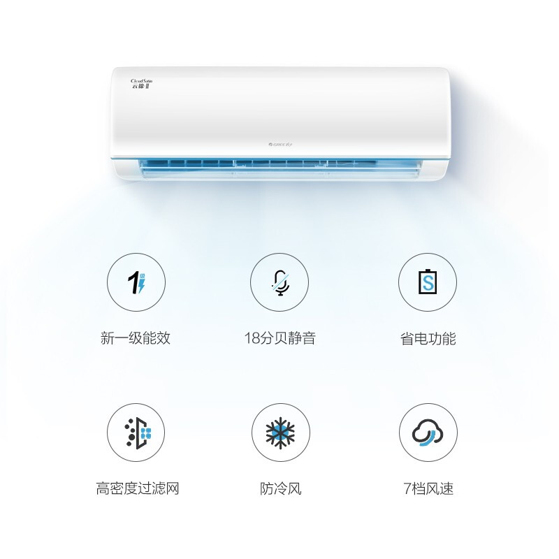 - 格力KFR-35GW/NhAa1BAj 1.5匹 云锦Ⅱ 新一级能效 变频冷暖 自清洁 智能WIFI 壁挂式卧室空调挂机