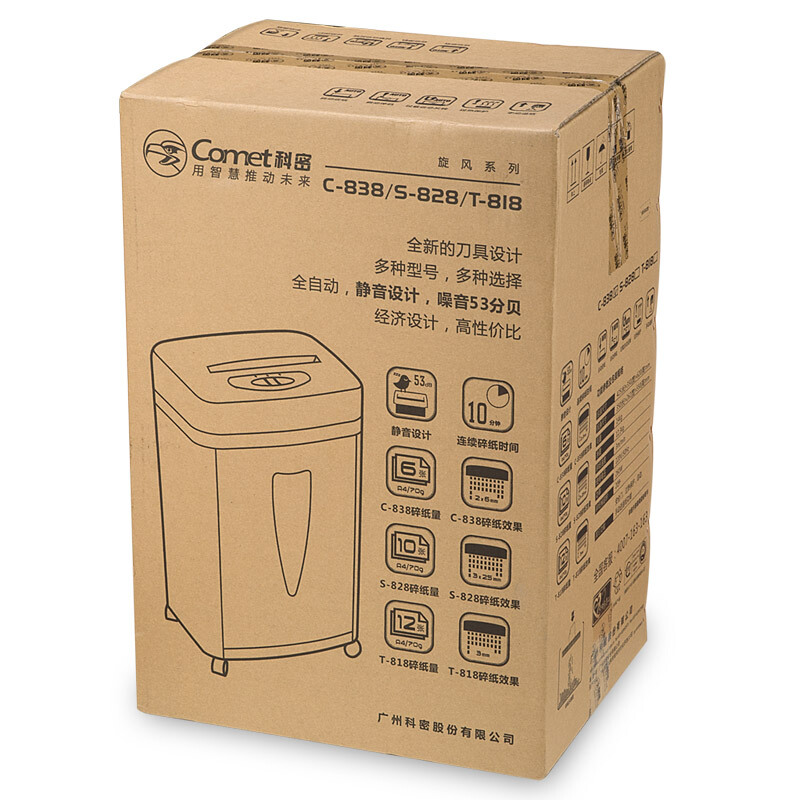 科密(comet)C-838碎纸机5级高保密减震静音 办公商用家用纸张文件粉碎机
